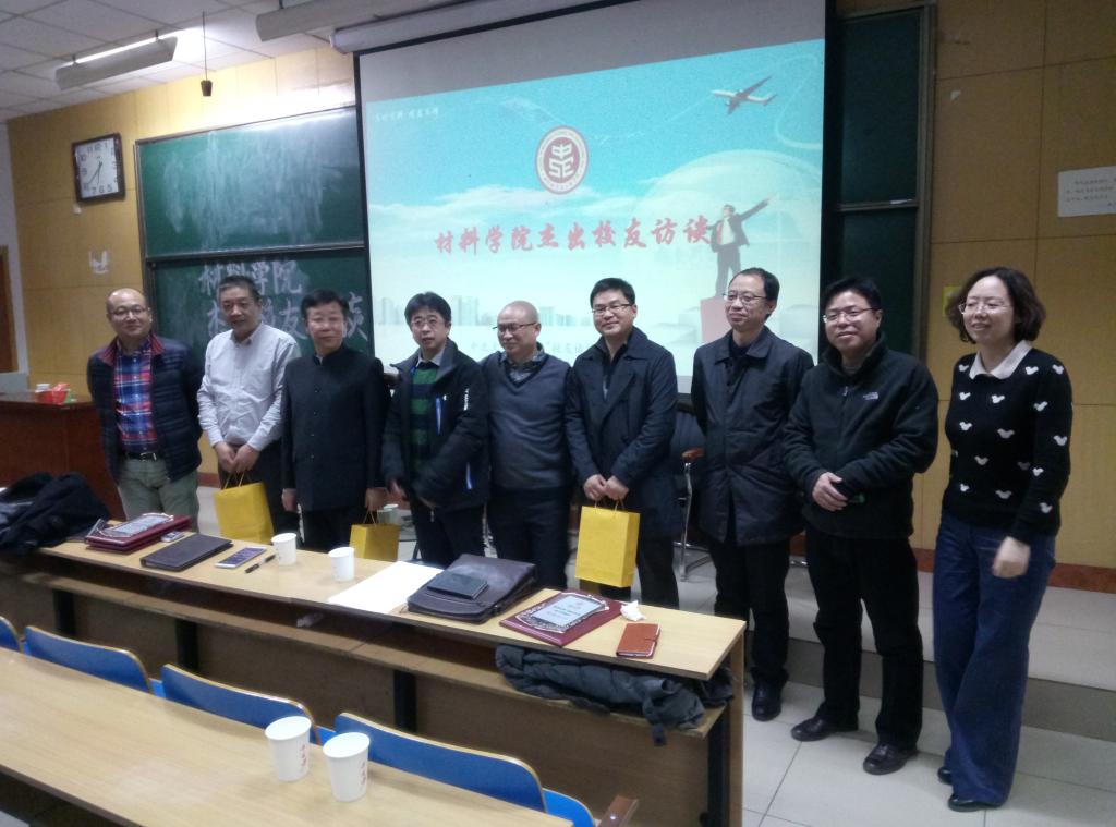 上海校友会会长吉继亮先生、余姚瑞德汽配有限公司总经理袁良武先生、上海凯品实业有限公司总经理丁水平先生、上海金发科技股份有限公司销售经理张彤先生和太原力虎集团董事长曹永勤先生。同时还有院党委书记侯华、副书记廖海洪及学生科科长郭云霞老师。