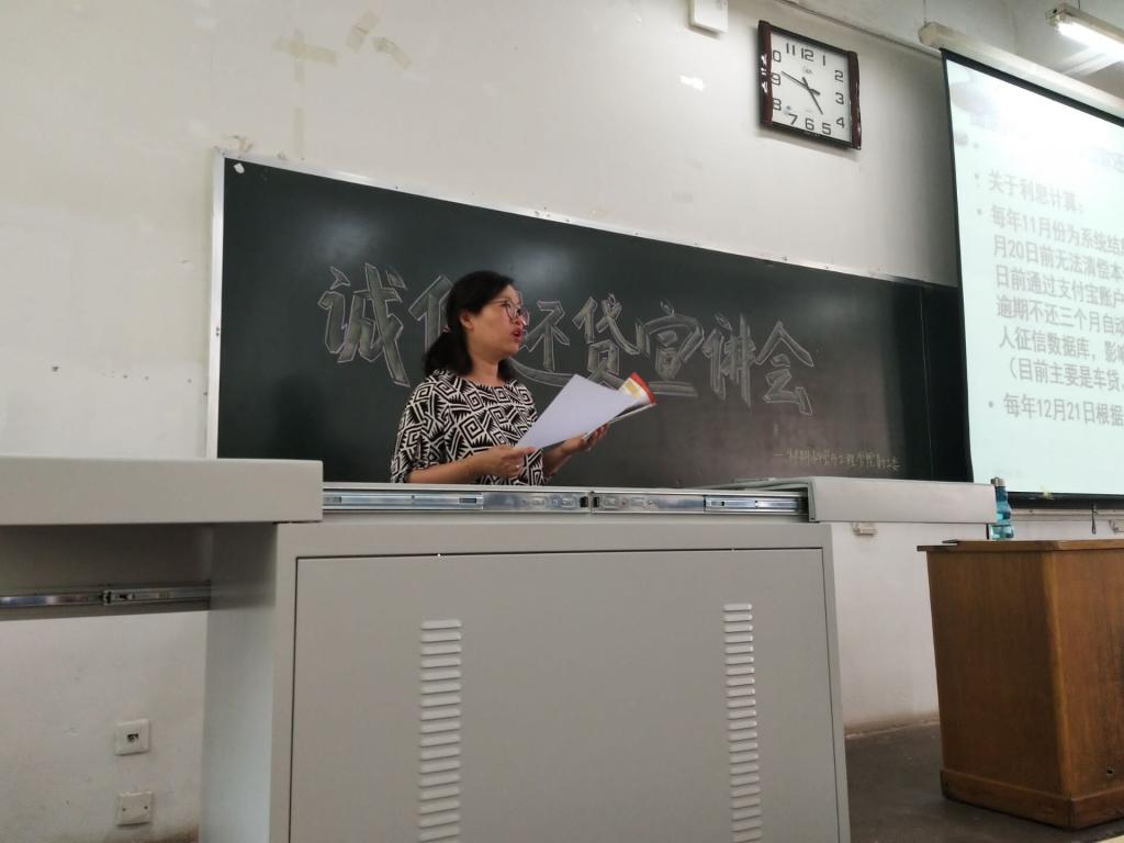 2018年6月22日,院勤工委在10202H组织举办了毕业生诚信还贷宣讲会,150名开行贷款毕业生、15至17级生源地贷款续贷学生参加了会议,学生科殷炳叶老师主讲。