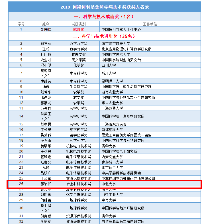 11月18日,何梁何利基金2019年度颁奖大会在京举行。今年,何梁何利基金科学与技术奖的提名数量再创历史高点,共收到推荐材料862份,有效被提名人836人,最终入选率约为15比1。评选委员会严格执行评选章程各项规定,经过科学评价、优中选优、无记名投票表决,评选产生56位获奖人。其中,“科学与技术成就奖”1名、“科学与技术进步奖”35名、“科学与技术创新奖”20名。我院张治民教授荣获“何梁何利基金科学与技术进步奖”。我省今年仅一人荣获该基金奖。